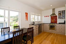 With polished floors, open fire, great kitchen and bathroom and easy flow through french doors to sundrenched deck and garden.