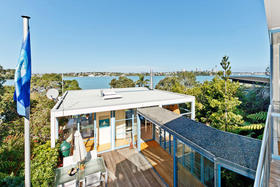 Designed to compliment the site this home is a simple contemporary design that emphasises natural light and maximum use of glass to capitalise on the stunning waterfront aspect that include expansive views over Ngataringa Bay towards Auckland City.
