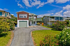 Beautifully presented sunny 4 double bedroom, 2 bathroom family Holiday retreat or Live-In residence. On a Full 564m² flat site situated one road back from Beachfront in a quiet cul-de-sac street with access way to the Beach. Large entertainers deck off lounge and dining areas. Plenty of room for extra visitors carparking plus boat. Lock up garage has been purposefully built to take a boat with a higher 3 metre (9.84 feet) stud height. This is a neat tidy home not to be missed, which realistic vendor definitely wants SOLD!!