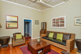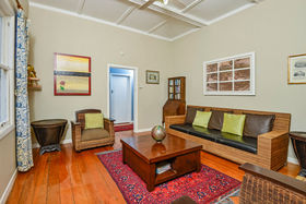 A transitional style Villa, this lovely dwelling has withstood the test of time admirably and contains charming features of a bygone era. Opportunity for extension and modification abound here, and yet the home is suited to family life in its present condition, with three bedrooms, formal lounge plus separate dining area, sun room, 'teenagers loft hideaway', under-house garage, and good garden space to front and rear.