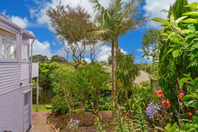 As is, upstairs provides two double bedrooms, bathroom, open plan kitchen, dining, living and deck. From this upper elevation you're treated to tree-top panoramic views of the water as far as the Coromandel, North Head and the foot of Mt Cambria.