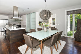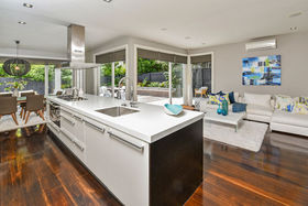 A remarkably well designed home, the downstairs offers - separate formal living with gas fire, open plan dining, stunning kitchen and family room that opens out to a small grassed garden and purpose built entertaining area with Louvre Tec roof. Upstairs, the generous master bedroom with walk in wardrobe and tiled bathroom delivers space and luxury. Also on this level another three bedrooms, two bathrooms, a second informal living area plus decks offering views across to Takapuna beach. Back on ground level, a generous office or fifth bedroom, internal garaging for three cars and off street parking for four.