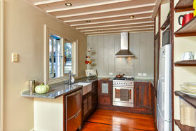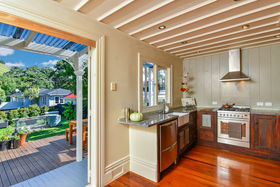 The interior retains many of the original features of the period, including sash windows, fretwork, leadlight panels and polished wood floors throughout. The three bedrooms are all doubles, separate lounge and open fireplace with an easy living flow to kitchen and French doors opening onto a generous sized deck and garden. Also the bonus of an outside office, teenage retreat or guest room, the choice is yours.