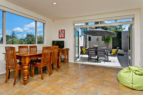 Generous double car garaging with internal access is provided but who needs a car when you can walk to cafes, restaurants, shops and beach just up the road or go and see a live show at the Bruce Mason Centre or travel to the CBD of Auckland in under 10 minutes.