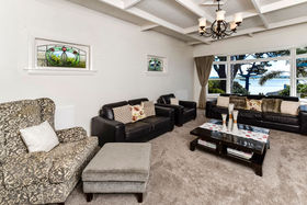 Set over two levels, the property has a formal lounge and picture book window facing north, looking out over the garden, with great water views beyond. All the rooms are spacious, the kitchen is well designed, and there is a separate dining area for those special family occasions.