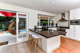 This is a coastal cool stylish home within an easy short walk to the sands of Cheltenham beach. Situated in prestigious Tainui Road, 34A is often admired and offers a lifestyle that most will envy. A beautiful resort style pool, spa and outdoor living area complete with pizza oven provides a perfect family entertaining area. Desirable open plan living, dining, kitchen seamlessly leads to the pool area. The laundry is discreetly placed beside the kitchen, making this a very user friendly space for coming in from the pool or the beach. For the winter nights the snug living area can be enjoyed while sitting in front of the fire. A study, double bedroom and lovely new tiled bathroom completes the lower level. Upstairs is bright and airy with the master retreat leading onto a private deck, perfect for a quiet coffee before starting the day. Two further double bedrooms have character with gabled ceilings. Plenty of storage in the eaves alleviates that problem of where to keep suitcases etc.