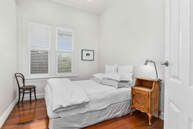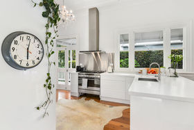 Tucked behind the immaculately sculptured hedges and landscaping this gorgeous character villa emanates positivity and warmth as soon as you arrive. With such elegant street appeal and style, making this ?home' is going to be super easy. Lovingly restored with attention to detail such as the completely restored sash windows. There is a light filled separate lounge with sash windows, louvre shutters and plush carpet make this the perfect space to relax in the evening. Move through to a large open plan dining and entertainers kitchen that really is the heart of the home. There are polished native timber floors, sash windows with louvre and two sets of french doors flowing out to the wrap around deck.