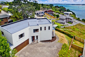 Stunning, close harbour views. Feel like you can jump from your deck into blue azure waters. As soon as you turn into the road, the fabulous water views will immediately entrance you. Be further exhilarated once you step inside this multilevel home with a difference. 4 very spacious double bedrooms with the very large master bedroom having an ensuite & walk in wardrobe. Step out onto this bedroom's very own private deck overlooking the stunning water views. Delightful split level living/dining/kitchen area with good size family room or second lounge, all adding a point of difference to the lucky owner of this modern home with the added, spectacular sea views from this aspect of the home. Drive into the double internal accessed garaging & step seamlessly into indulgent living. Surround sound system, pre-line home theatre system, computer network cabling ready for the extra extravagances. Family living in a family location with the boat ramp & wharf only meters down the road, with a family playground to be found. Fish off the wharf or just watch the water play happen with jet skis, yachts, skiing or just everyone enjoying plain old water play.