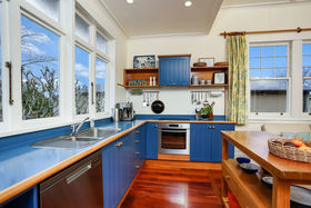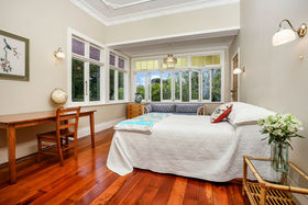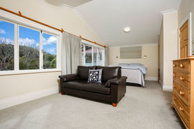 The hub of the home is the farm house kitchen/dining/family room with formal lounge adjoining. On this level, there are two double bedrooms, a study, two bathrooms plus a second living room. In the 1990's a second level was added providing a fourth bedroom and a large master bedroom suite encompassing views from Titirangi to the upper reaches of the Waitemata Harbour and Mt Eden's iconic cone.