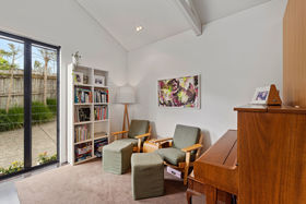 One area provides a large living/dining/kitchen area with reading nook and a discreetly hidden laundry and powder room. Surrounded by large opening doors this area opens seamlessly onto decks and paved areas with a northerly and westerly aspect surrounded by low maintenance landscaped gardens, there is always a sheltered private spot to relax in. A gate into Melrose Reserve is a bonus, why not make use of this space that you do not have to maintain and let the children enjoy the playground!