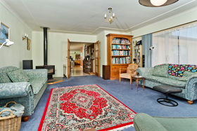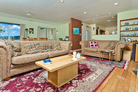 Recent modern extension for family room with Rimu floors and double glazing plus sea views.