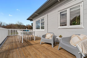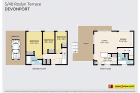 Bathed in northern sun 5/40 Roslyn terrace has on the upper level, family bathroom with bath, open plan living/dining/kitchen leading to an expansive private deck. Stairs from the deck lead to the well-established garden with a large variety of mature fruit trees, plenty of room for a trampoline, off street parking and a carport, all privately secured behind a high fence.