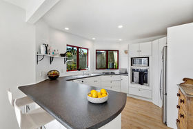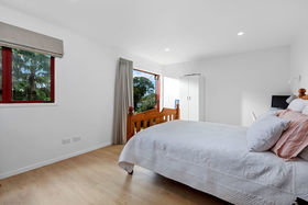 The spacious kitchen and dining area have surround decks to french doors with expansive views over the Birkenhead area towards the coast. Also on this main living area is a separate bathroom and laundry area.