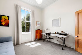 Upstairs is the spacious master bedroom and ensuite bathroom. This area has great views through French doors towards Rangitoto and Cheltenham beach. Architecturally designed to maximize space and sun with angled ceilings and lots of windows. Ample room for an office area or additional living area in combination with the bedroom.
