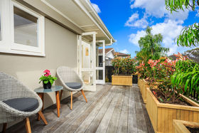 Originally a brick bungalow, this delightful character-filled home was moved to the rear section 20 years ago and, alongside an exterior reclad, many of its quality 1950s features were sensibly retained. Its quintessential Kiwi bungalow 'bones' are evidenced by long timber-framed windows; wide, sheltering eaves; elevated, ventilated floor and attractive, interior high-ceiling scotia detail. For the current owners, a chapter spanning almost two decades of happy, homely, family living in this top location is nearing its conclusion and their decision to start a new chapter has created a rare opportunity for a young couple, family or active downsizer/s to seize. With light, airy spaces, easy flow and convenient, accessible location this home has evoked much joy and been an absolute breeze to live in. A full refurbishment three years ago added fresh, stylish appeal to the bathroom / semi-ensuite and an updated kitchen that draws its mid-century character from the original home. French doors open from three separate rooms onto two decks - front and rear, offering both a perfect morning coffee spot and an ideal space for evening drinks, entertaining and BBQs. Beautifully landscaped for peace, birdsong and seclusion, the decks are linked by an expansive, fenced, flat lawn area ideal for backyard cricket and family play! Plenty of off-street parking too! The internal access, carpeted garage and adjoining, custom-made, timber shed offer a variety of options for extra living spaces, home office, studio and/or storage. And of course, residents of this property enjoy the endless benefits of everyday Hauraki living - a short walk to Takapuna Beach, Hauraki School, local cafes, playground, Bayswater Reserve cyclepaths, supermarket, medical and the retail centre at Hauraki Corner for all essential needs. Esmonde Road motorway on-ramp is two minutes away providing easy city access. This is a superb, convenient and attractive location to make the most of whatever stage of life you're enjoying. Invest in your future, short or long term, and settle in this desirable, friendly suburb now.